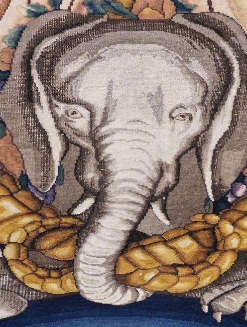 Ein Elefant durfte natürlich nicht fehlen, galt er doch als Symbol königlicher Macht und Weisheit. Zu den besonderen Attraktionen der Menagerie Ludwigs XIV. im Park von Versailles gehörte ja auch ein vom portugiesischen König geschenkter Elefant, der Elefant von Versailles, der auch ein beliebtes Modell für die königlichen Maler war.