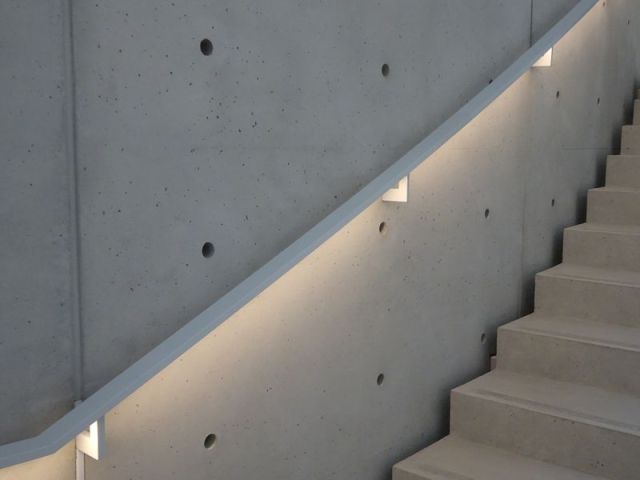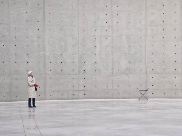 Der Beton, zuvor intensiv getestet, dann geschliffen, erfüllt mit seiner glatten, matten, homogenen, fast samtigen Oberfläche Tadao Andos hohe Ansprüche. Seine Ankerlöcher für die Verschalungsplatten tragen die Signatur Andos. In ihrer Anordnung, Größe und Seiten-verhältnisse erinnern sie japanische Tatamimatten. Die Zahl der Ankerlöcher geht über die technisch notwendige hinaus und folgt der in Japan üblichen Sichtbetonbauten mit ihrer größeren Zahl an Schalungsankern.