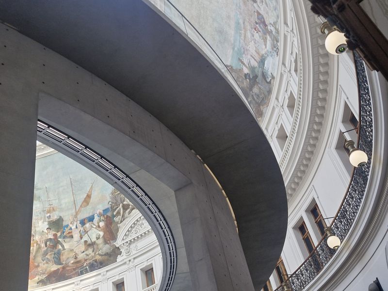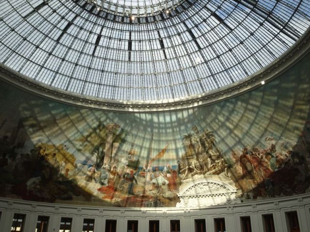 Das Äußere des Baus blieb unangetastet. Sorgfältig wurde Bélangers großartige Kuppel restauriert und neu verglast. Das Kuppelpanorama, „ein Überbleibsel aus einer Zeit, als sich die Kolonialmächte hemmungslos bereicherten und feierten: ein stolzer Lobgesang auf den Kapitalismus“[9], wurde gereinigt und repariert. Da es eng mit der Geschichte des Baus verbunden ist, sollte es nicht dem Cancel Culture-Zeitgeist zum Opfer fallen. Darüberhinaus wurden die Räume, die den Kernbau mit der Kuppel umgeben, von entstellenden Eingriffen befreit und in großen Teilen für die Präsentation der Sammlung zur Verfügung gestellt.