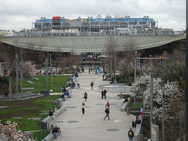 Besonders schön ist, wenn ein Platz am Rand frei ist – entweder mit Blick nach unten in den Kuppelraum oder nach außen auf das (derzeit wegen Renovierung geschlossene) Centre Pompidou, das Dach von Les Halles und auf die Kirche Saint Eustache. Fotos: Wolf Jöckel