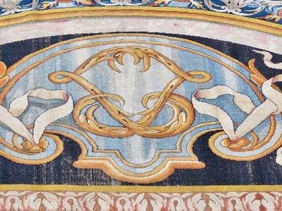 Zwei identische Teppiche. Der eine, 1668-1677 gefertigt, der andere 1688. Der zweite war als Staatsgeschenk bestimmt, blieb dann aber doch im Besitz des französischen Staates.[12]