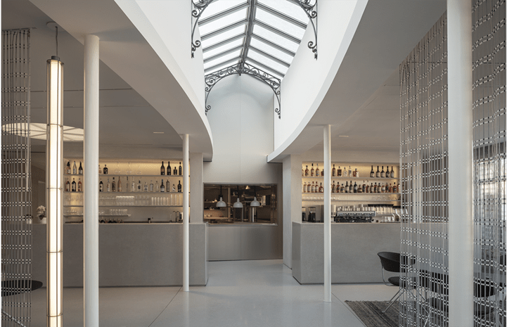 Die Galerien wurden auch durch ausgesuchte Möblierung und Ausstattungselemente – nach Entwürfen der Brüder Bouroullec – belebt. Sie gestalteten auch das Restaurant im obersten Geschoss.