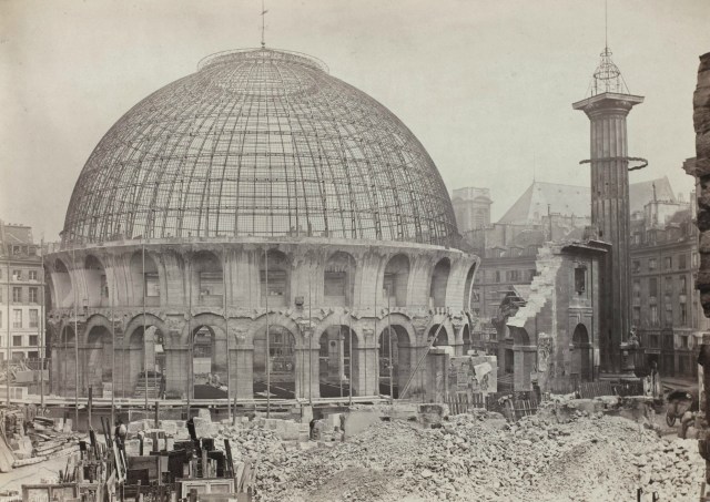 Reduziert auf diesen inneren Arkadenring ragten von der Halle au Blé nur noch die kahle Kuppel und die Medici-Säule aus den Trümmern des Saint-Eustache-Viertels heraus. Bemerkenswert ist dabei, dass die Medici-Säule, letzter Überrest des Palais von Katharina de Medici aus dem Jahr 1572 erhalten blieb. Aber es gab einen breiten Konsens unter Kunstsachverständigen, dass diese Säule zu den markanten Punkten und Sehenswürdigkeiten von Paris gehöre. [1a]