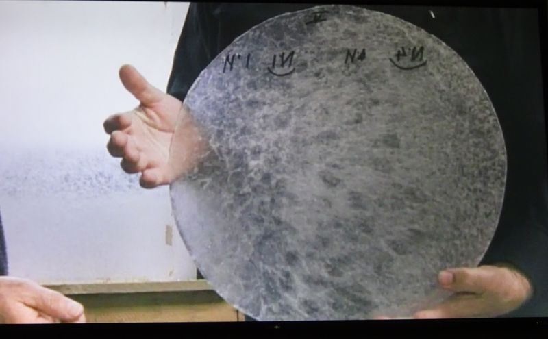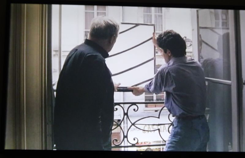 Aus dem im Museum von Rodez gezeigten Film zur Entstehung der Glasfenster: Arbeit auf Pappen in dem Pariser Atelier des Künstlers.
