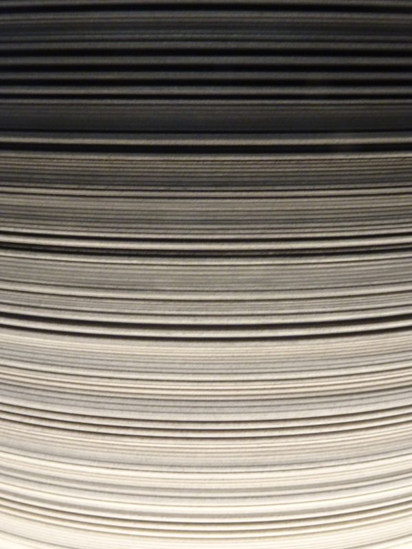 Diesen Rillen stehen manchmal glatte Oberflächen gegenüber: Flächen, Auslöschungen, Brüche, ruhige Zonen- ein Rhythmus bildet sich.“