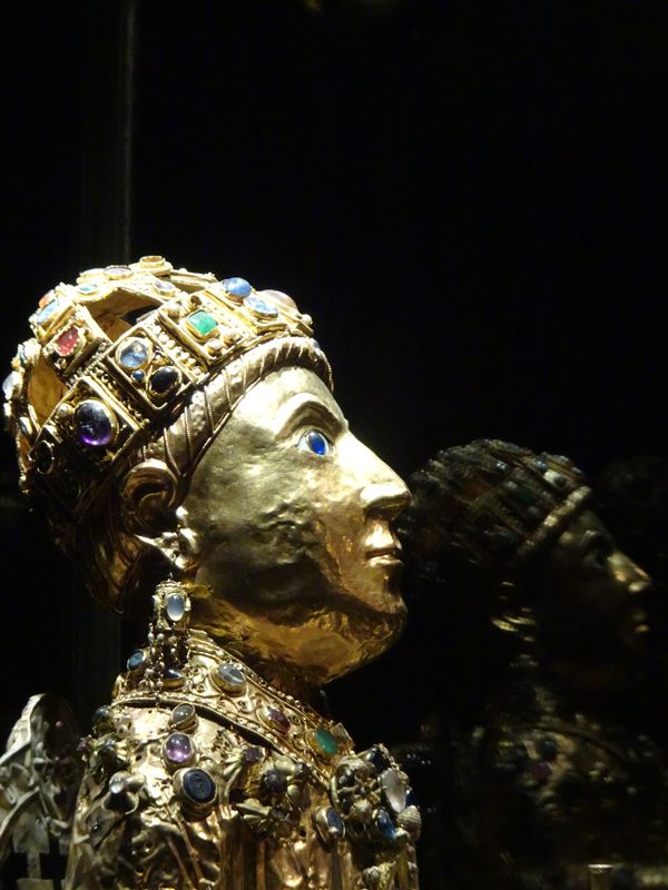 Neben den Glasfenstern von Pierre Soulages ist das der Kirchenschatz mit der Reliquie der heiligen Fides, wozu dann noch das grandiose Tympanon über dem Eingang der Kirche kommt.