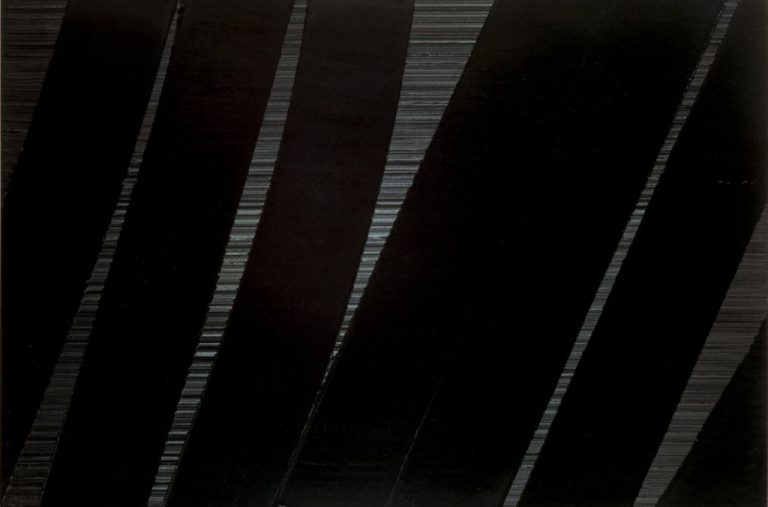 „Eines Tages hatte das Schwarz fast die ganze Leinwand bedeckt. In gewisser Weise gab es keine Malerei mehr, weder weiße noch farbige Töne, die aus dem Kontrast lebten. Aber in diesem Übermaß sah ich die Verneinung des Schwarz entstehen: die Unterschiede der Materie, des Gewebes, welche das Licht einfingen oder sich ihm verweigerten, schufen besondere Werte und Farben, eine Beschaffenheit von Licht und von Raum, die mein Verlangen erregten, zu malen… Ich habe mich auf diesen Weg eingelassen, und ich finde noch immer neue Eröffnungen. Es gab keinen ausdrücklichen Willen, das Licht aus dem Schwarz entspringen zu lassen. Dies ergab sich, während ich malte.“[16]