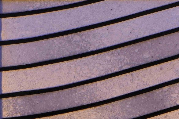 [23] Pierre Soulages, Anmerkungen zur Arbeit, S. 18 Nachfolgend zwei Abbildungen von Obergadenfenstern auf der Südseite der Kirche in unterschiedlicher Beleuchtung. Das erste Bild stammt von uns, aufgenommen am 28.9.2020 bei trübem Wetter, das zweite zeigt das rechte Fenster des vorigen Bildes im Sonnenlicht. Dieses Bild ist entnommen aus: Pierre Soulages, Lebendiges Licht, S. 24