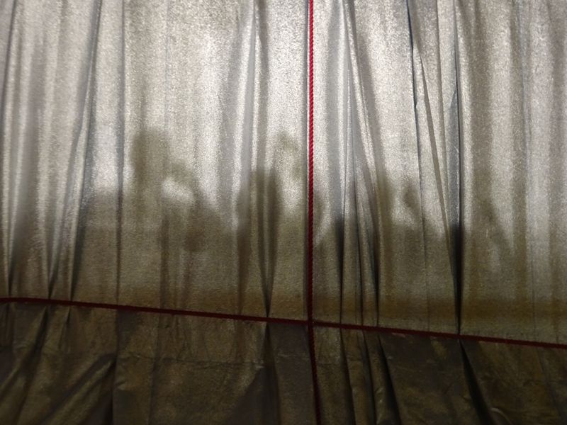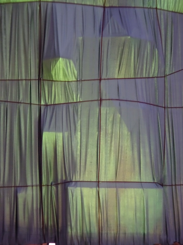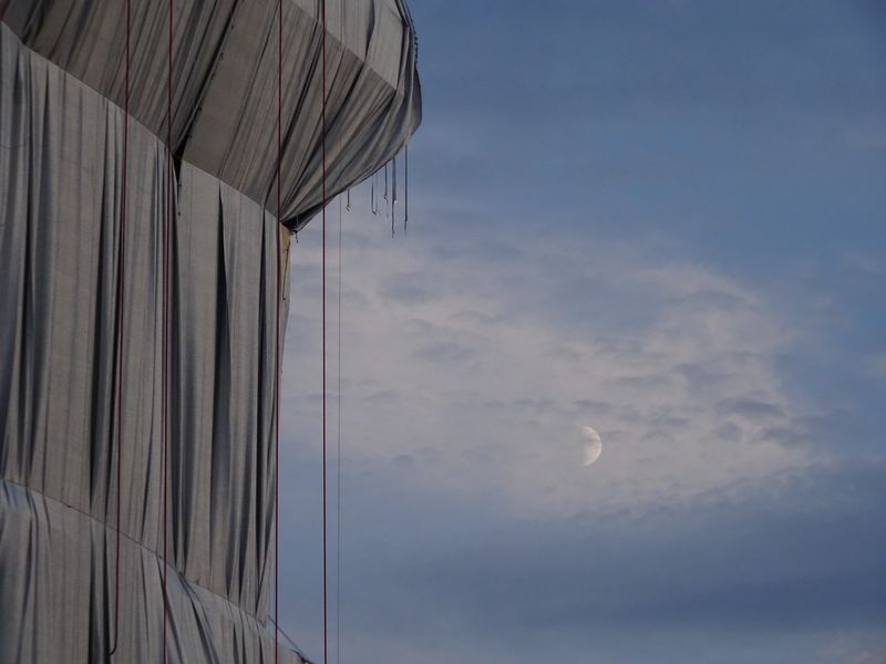 Die noch unverschnürten, sich leicht vom Wind bewegten Stoffbahnen. Foto: Wolf Jöckel 13.9.
