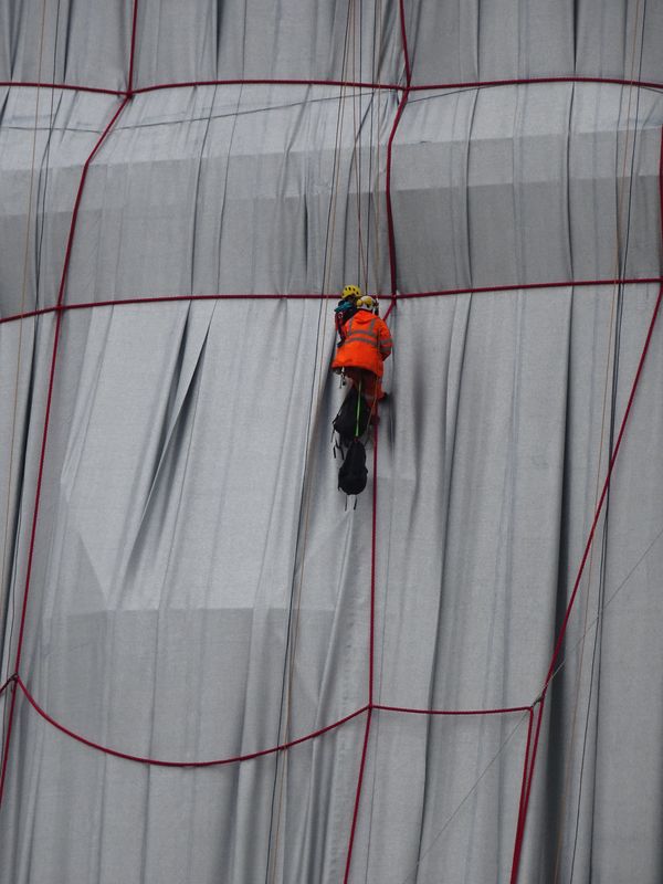 Schon der Prozess der Verhüllung des Triumphbogens ist eine große Attaktion. Bild: Wolf Jöckel 13.9.