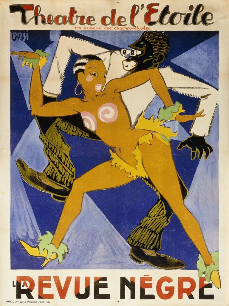 Josephine Bakers Pariser Karriere begann am 2. Oktober 1925 auf der Bühne des Théâtre des Champs-Élysées, als die 19-Jährige mit ihrem danse sauvage für Furore sorgte. „Ihre Auftritte in der „Revue nègre“ oben ohne mit Bananenröckchen oder auch gänzlich nackt befriedigten während der Kolonialzeit Stereotype. Baker sei die Fantasie einer Afrikanerin gewesen, nicht die einer schwarzen Amerikanerin, erklärt die Sprecherin des Théâtre des Champs-Elysées, Ophélie Lachaux. Daher sei von ihr gewünscht worden, etwas „Wildes“, „Afrikanisches“ zu tanzen, etwas, das an Stammestänze erinnern sollte.“[11] Kolonialistischen und rassistischen Sterotypen entsprach auch die Werbung für die Revue: