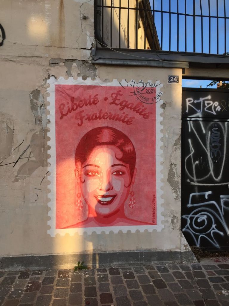 2019 lancierte der französische Essayist Laurent Kupfermann die Petition „Osez Joséphine“.[1] Es war eine Aufforderung an den französischen Präsidenten, den Mut aufzubringen, Josephine Baker ins Pantheon, die französische Ruhmeshalle, aufzunehmen. Am 30.11. 2021 war es dann so weit: Das Portal des Pantheons war in den Farben der Tricolore angestrahlt und der Name und Portraits von Josephine Baker wurden auf die Fassade projiziert.