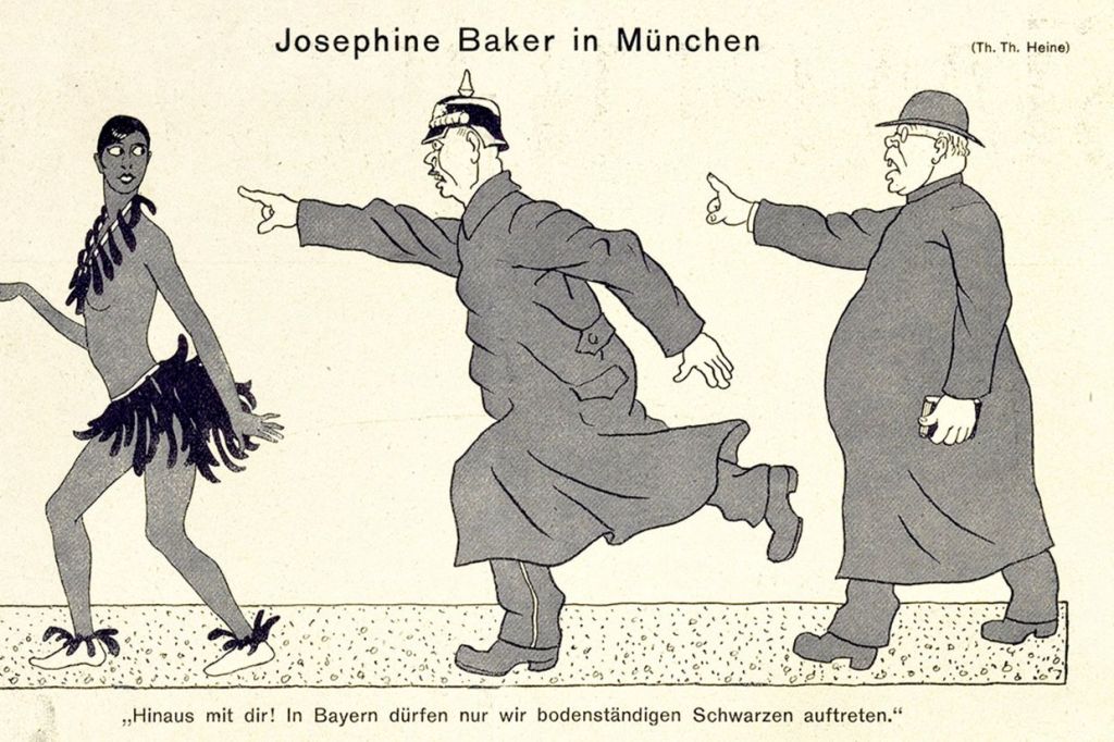 Nachfolgendes Bild: Karikatur von Thomas Theodor Heine aus dem Satire-Blatt Simplizissimus. Aus: https://www.la-croix.com/Culture/Josephine-Baker-mille-vies-Phenix-2021-11-26-1201187202