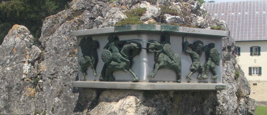 Dies dürfte insbesondere im Pilgerhospiz zu Roncesvalles der Fall gewesen sein, wo in Form des mühevollen Aufstiegs zum Ibañeta-Pass drei der vier wichtigsten Pilgerwege nach Santiago de Compostela seit ca. 1050 vereint die Pyrenäen überqueren. Ein massiver, rohbehauener Gedenkstein mit der schlichten Inschrift „Roldan“ (der spanischen Variante des Namens Roland) und der Jahreszahl der Schlacht (778) grüßt seit 1967 von der einsamen Passhöhe weit ins Land und hält die Erinnerung wach, fern wie ein Mythos …