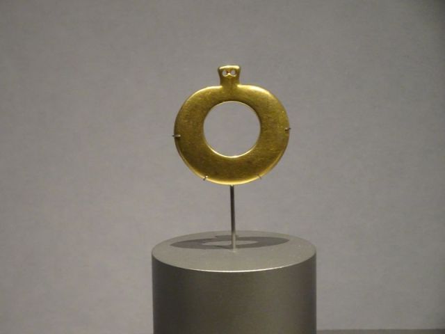 Auch diese Mondsichel ist aus Gold. Sie stammt wahrscheinlich aus dem Gebiet des heutigen Irlands oder Großbritanniens und ist ca 2000 vor Christus entstanden.