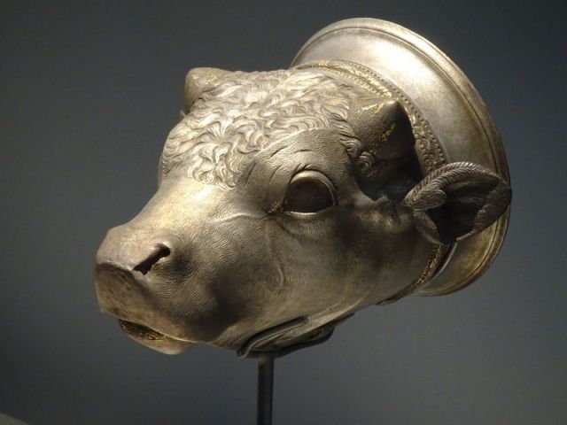 Es handelt sich um einen sogenannten Rhyton, ein in den antiken Zivilisationen von Mesopotamien und des Mittelmeers verwendetes Trinkgefäß für festliche und religiöse Anlässe. In seiner Präsentation der Ausstellung versäumt der „Figaro“ es nicht, darauf hinzuweisen, dass es nur noch drei weitere entsprechende Rhyta dieser Art gibt: In einem privaten Museum in Japan, dem Metropolitan Museum in New York und der Ermitage in Sankt Petersburg.[24]