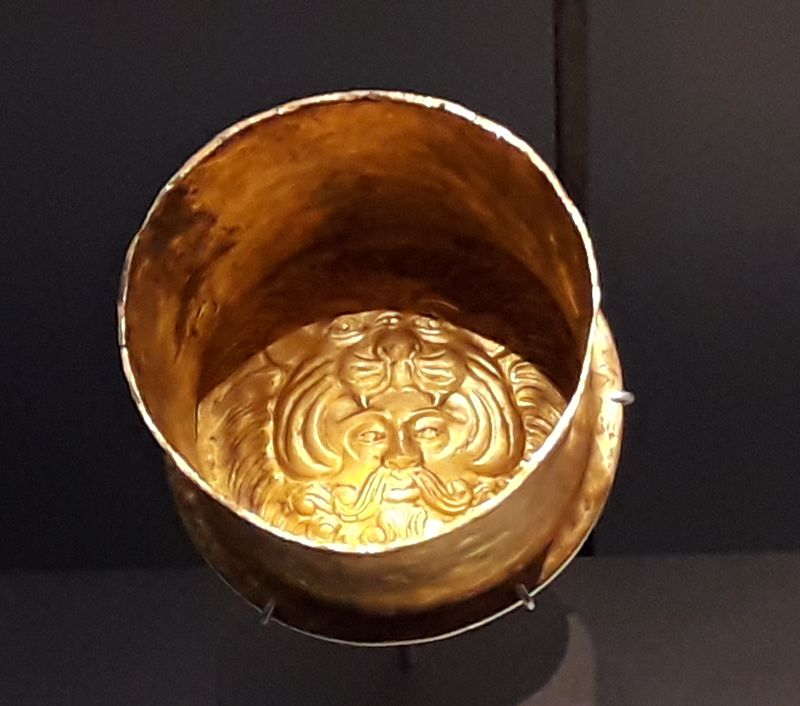 Dieses fein ziselierte Trinkgefäß (Rhyton) aus Gold und Silber stammt aus dem hellenistischen Einflussbereich (ca 100 vor bis ca 100 nach Chr.)