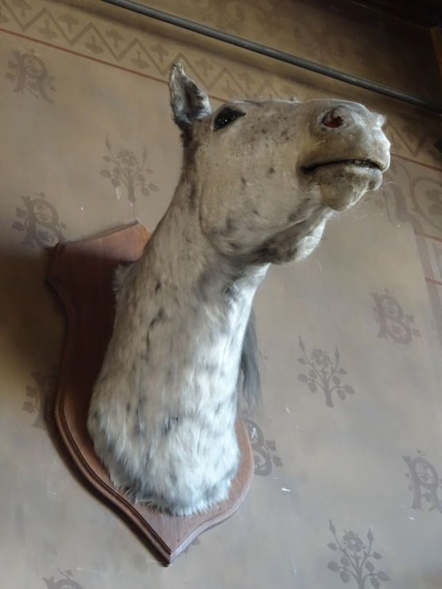 Tiere gab es in und um das Schloss aber nicht nur als Jagdtrophäen und konservierte Köpfe von Tieren, die Rosa Bonheur ganz besonders lieb waren.  Zu dem Besitz gehörte auch eine Menagerie mit allerlei, auch wilden Tieren Die lebten überall. Hühner, Bären, Enten, Pferde, Ponys, Gazellen bevölkerten Ställe und Gehege. Affen und gezähmte Löwen bewegten sich frei im Haus und in dessen Umgebung, für Rosa Bonheur eine kleine „Arche Noah“ inmitten des großen Anwesens mit Weideflächen und Wald. [16]