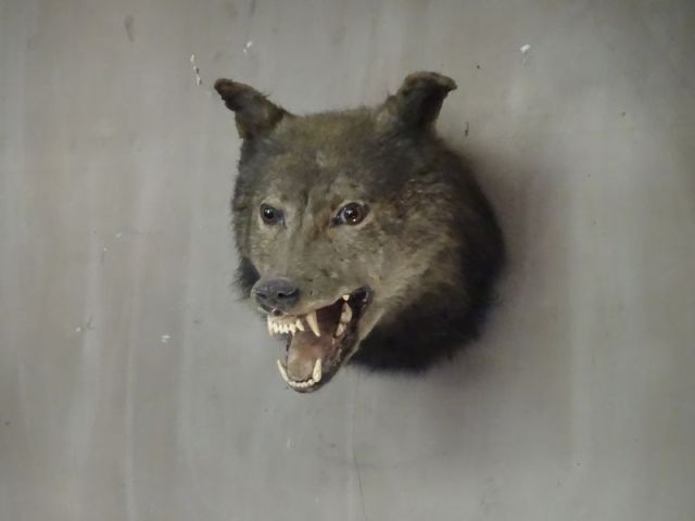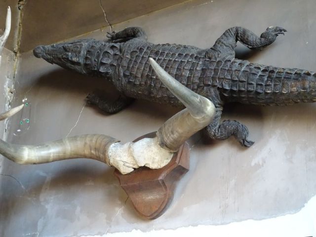 Einen Ehrenplatz im Atelier nimmt dieses kapitale Hirschgeweih über dem Kamin ein.