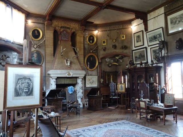 So kann das Hirschgeweih über dem Kamin durchaus eine Jagdtrophäe Rosa Bonheurs sein. Bemerkenswert sind auch hier die in sich verschlungenen Initialien RB, die von aristokratischem Selbstbewusstsein zeugen. Sie sind überall im Schloss zu finden.