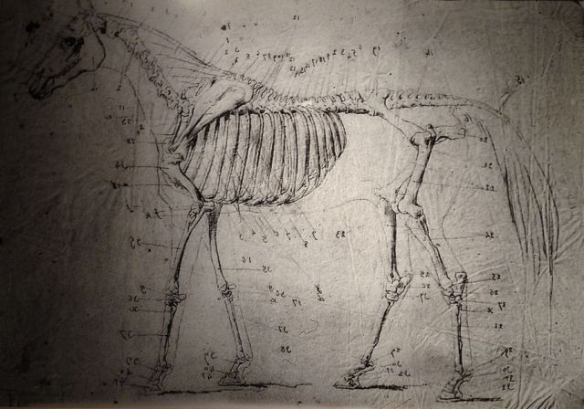 Besonders eindrucksvoll sind dort die großformatigen Reproduktionen akribischer anatomischer Pferdestudien, die einem Atlas der Biologie oder Tiermedizin entnommen sein könnten.
