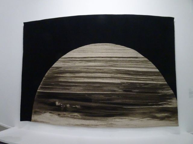 Wandteppich Demi-terre (1974-1975): Einer von mehreren Wandteppichen, die von der Manufacture des Gobelins in Paris und der von Beauvais nach Entwürfen von Bergman hergestellt wurde: Hier ein Blick von einem anderen Stern auf die untergehende Erde….