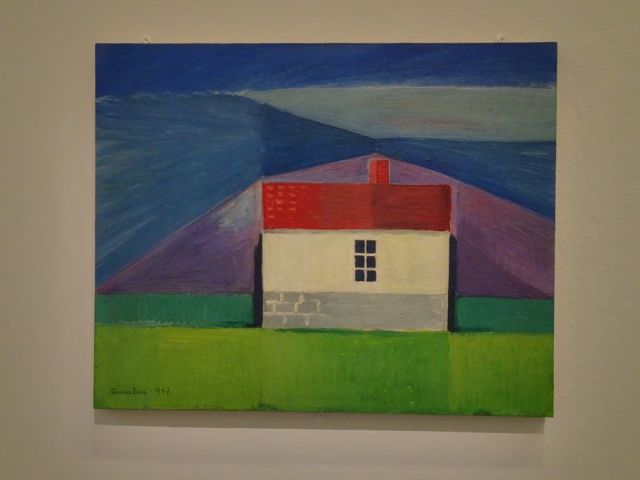 1949, 1950 und 1951 verbringt sie ihre Sommer im Süden Norwegens, wo sie die Serie der Fragmente einer Insel Norwegens malt, wo das oben abgebildete erste Bild entsteht, bei dem sie ein goldenes Metallblatt verwendet, und wo sie ihren ersten größeren Auftrag erhält, die Dekoration eines Hotels in Südnorwegen.