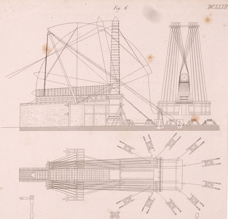 Abb. 15: Entwurfszeichnung des Ingenieurs Apollinaire Lebas für die Aufrichtung des Obelisken (Detail)