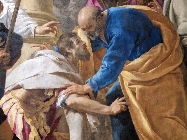 Laurent de La Hyre (1606-1656) hat als May des Jahres 1637 eine dramatische Szene gemalt: Die Bekehrung des Paulus: Auf dem Weg nach Damaskus erscheint dem römischen Offizier Saul die visionäre Lichtgestalt des auferstandenen Christus. Der Verfolger von Christen wird als Paulus „Apostel der Völker“.