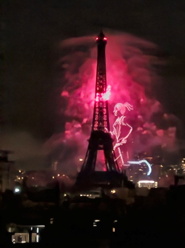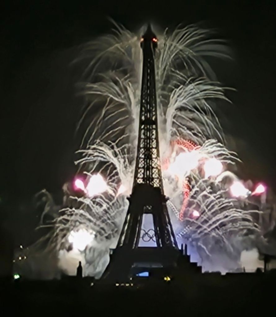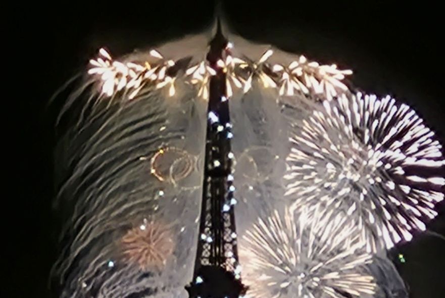 Wie immer fand auch diesmal das traditionelle Pariser Feuerwerk zum Nationalfeiertag am Eiffelturm statt. Während sonst aber hunderttausende Schaulustige das Feuerwerk vom Marsfeld oder dem Trocadero betrachten konnten, war das diesmal wegen der Aufbauten für die Olympischen Spiele nicht möglich.