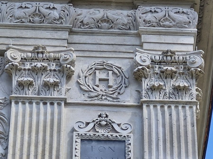 Dass der Brunnen zu Ehren von Henri II errichtet wurde, hat Gujon entsprechend in Stein gemeißelt.