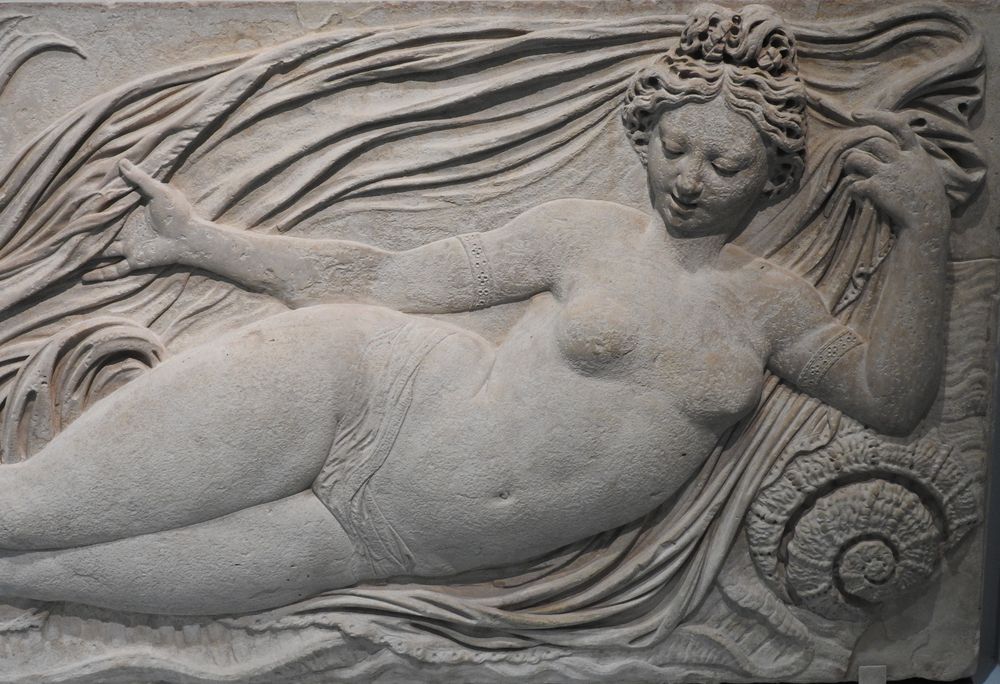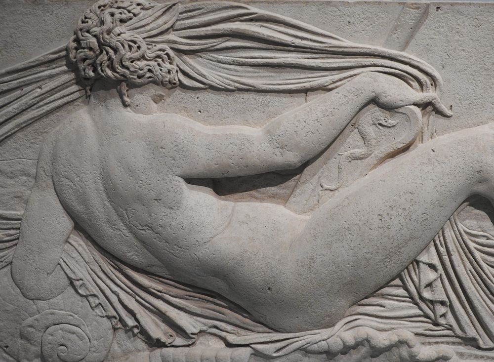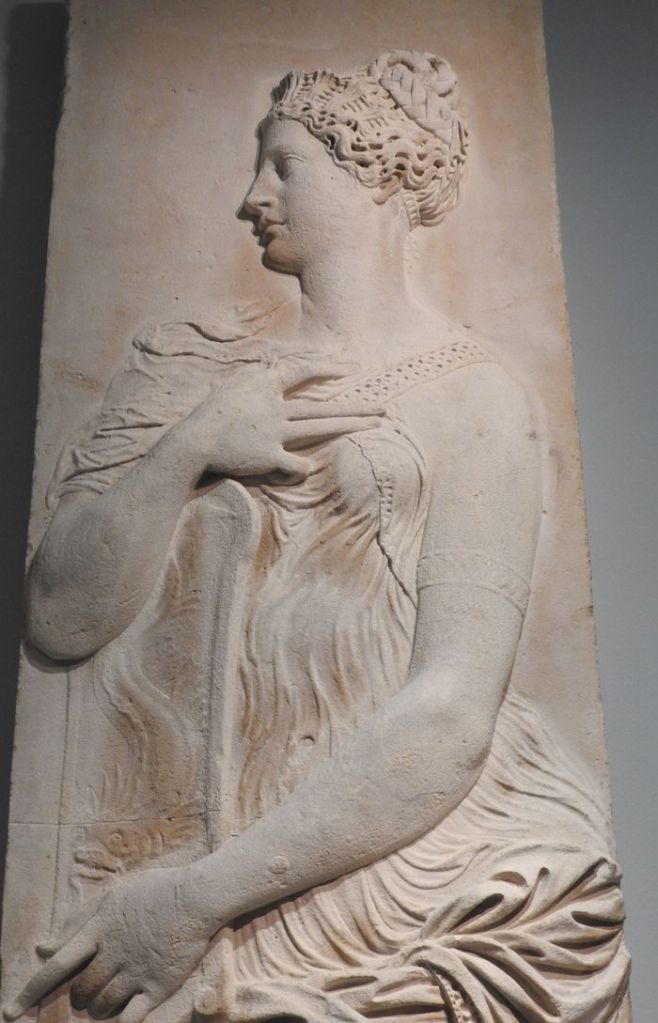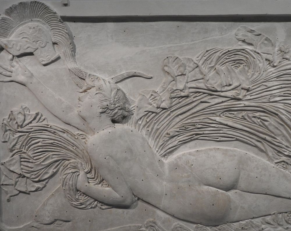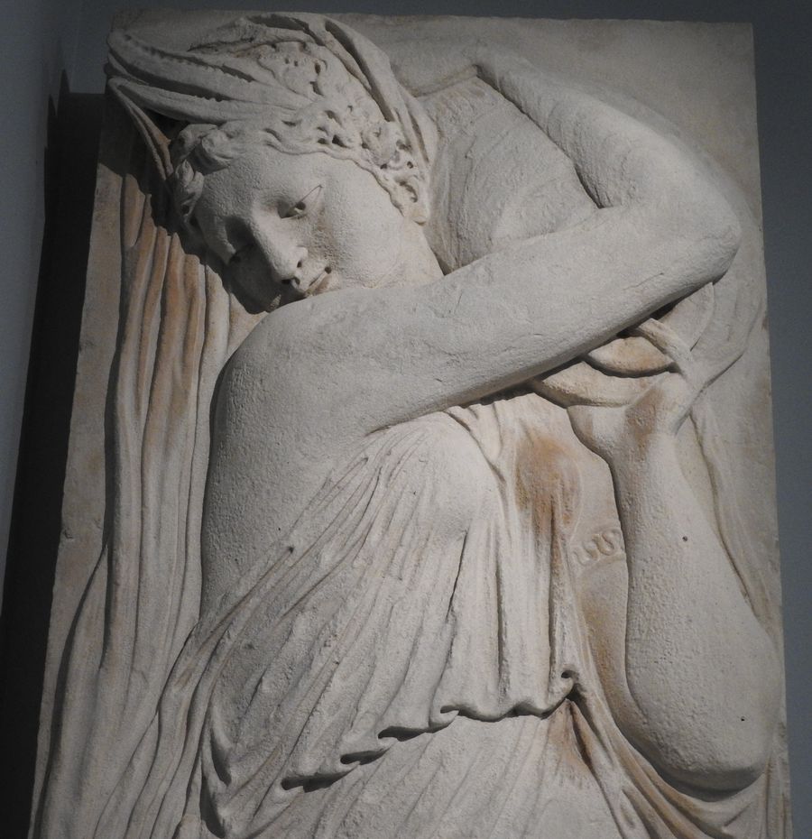 In der Carnavalet-Ausstellung ist auch ein Relief von David d’Angers ausgestellt: die hingelagerte Nymphe Tetis, die ihrem Sohn Achill, dem Helden von Troja, gerade einen von Hephaistos geschmiedeten Helm reicht.
