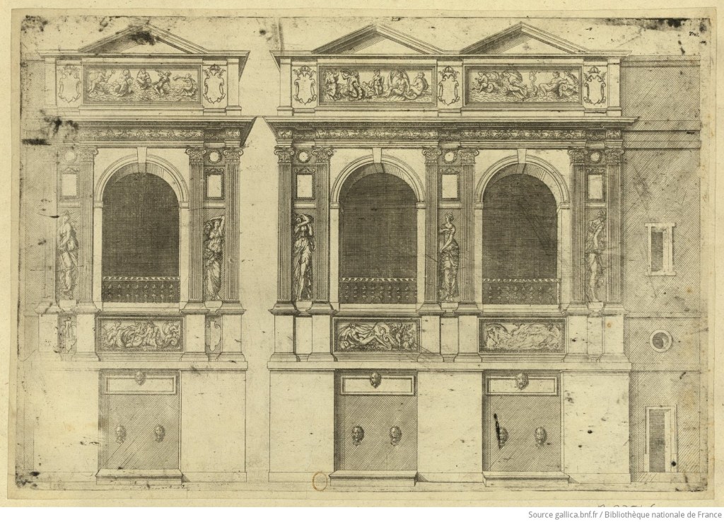 Zeitgenössischer Stich der beiden Fassaden des Brunnens von JacquesAndrouet du Cerceau(1511?-1586)[9]