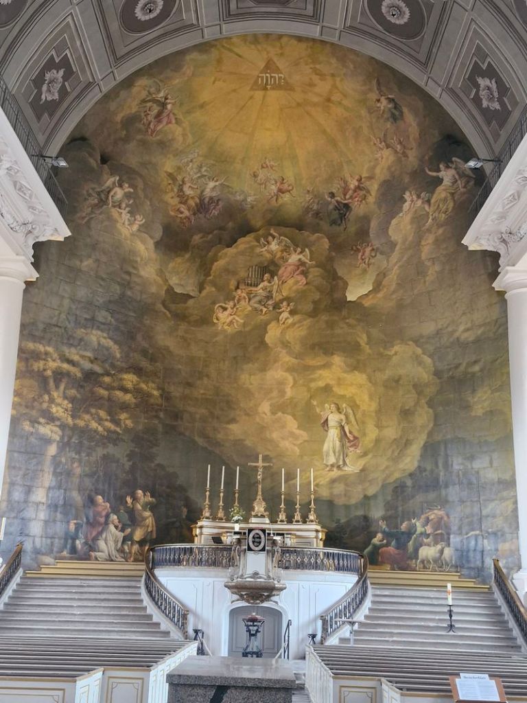 Und das wunderbare Altarbild, mit 350 m2 das größte Europas, besteht aus Papiermaché-Platten.