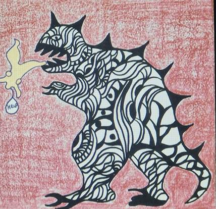 Monster/Ungeheuer spielen im Werk Niki de Saint Phalles eine große Rolle – auch im My love-Leporello gibt es ein menschenfressendes Ungeheuer, das dort allerdings seine Beute wieder ausspuckt…