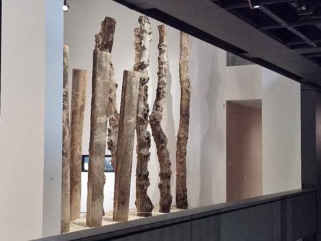 Durchblicke: Baumstämme für den Küstenschutz von Saint-Malo von Raymond Haynes und Pierrick Sorin. Zum ersten Mal ausgestellt in der Fondation Cartier Boulevard Raspail 1994. Auch eine Reverenz an Chateaubriand, der in Saint-Malo aufwuchs und später auf dem Gelände der Fondation Boulevard Raspail wohnte.