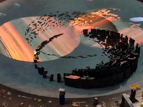 Außerdem schuf er fünf 200 bis 263 Quadratmeter große Plattformen, die sich mit einer für die Besucher sichtbaren Mechanik über eine Höhe von 11 Metern anheben oder absenken lassen.