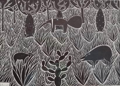 Aus der Bilderserie „Künstler des Gran Chaco“. In diesem Wald im Norden Paraquays, der von völliger Zerstörung bedroht ist, leben die autochtonen Volksstämme Guarani und Nivaclé. Sie machen in ihren Zeichnungen auf die Vielfalt der bedrohten Flora und Fauna aufmerksam.