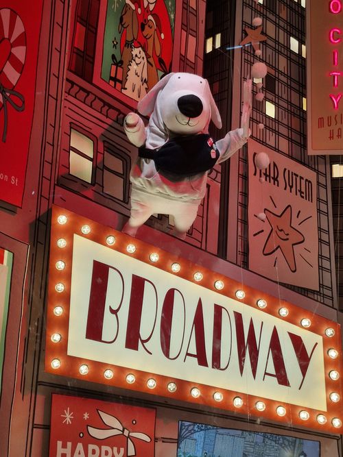 Das benachbarte Kaufhaus Au Printemps hat seine diesjährige Weihnachtsdekoration unter das Motto „Weihnachten in New York“ gestellt.