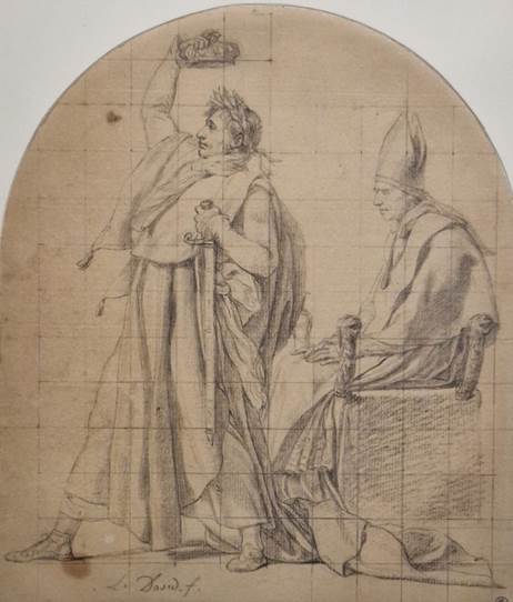Napoleons „Hofmaler“ Jacques Louis David hat diese Szene in einer Zeichnung festgehalten, die derzeit in einer David-Ausstellung im Louvre [4] zu sehen ist: