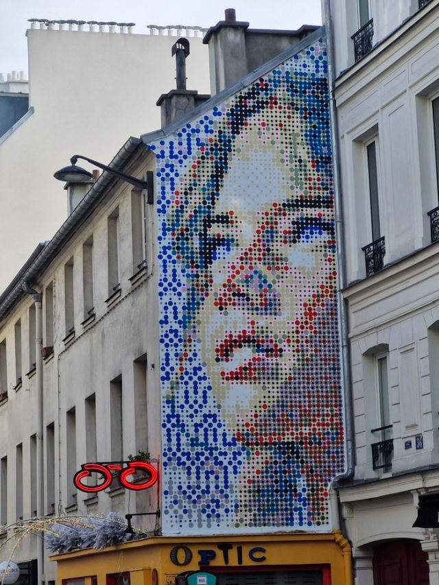 Hoffnung heißt auch das „neo-pointilistische“ Wandbild des Street Art-Künstlers Kan, das derzeit auf der M.U.R Bastille in der Rue de la Roquette im 11. Arrondissement von Paris zu sehen ist.
