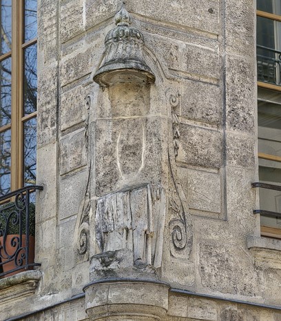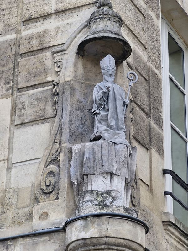 Wo auf der Île Saint-Louis die Rue Le Regrattier auf den Quai Boubon trifft, steht auf einem Sockel des Eckhauses der Torso einer Statue, von der nur noch die Beine mit Resten eines Gewandes vorhanden sind.
