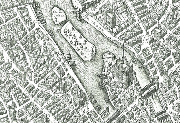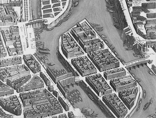 Der Raum auf der Île de la Cité war immer enger geworden. Dicht an dicht standen die Häuser. Enge, verwinkelte Straßen und Gassen bestimmten das Bild der Île de la Cité. Lange widersetzte sich die Kirche der Bebauung der beiden Nachbarinseln.  Zum anderen fehlten für die zunehmende Zahl der Einwohner und des dadurch anwachsenden Verkehrs Brücken zwischen den Seine-Ufern.