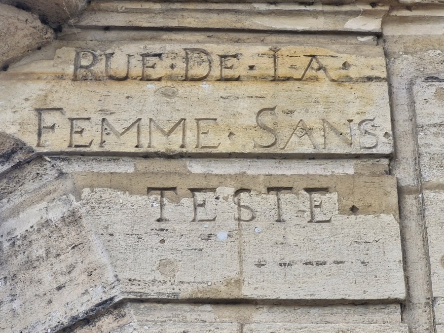 Auch wenn in Stein gemeißelt immer noch Rue de la femme sans teste da steht, offiziell wurde der schreckliche Straßename getilgt.