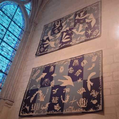 Schöne Beispiele dafür sind in den nördlichen Seitenkappellen der Kathedrale die modernen Wandteppiche, die die historischen Mays-Gemälde ergänzen. Hier zwei Teppiche mit Motiven von Matisse.