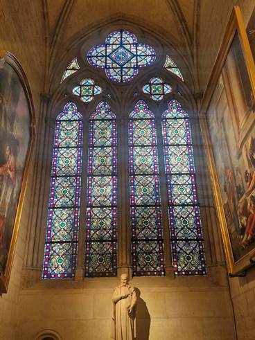Eines der von Viollet-le-Duc entworfenen Fenster im südlichen Seitenschiff (Foto: Wolf Jöckel, Januar 2026)[2]