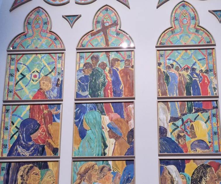Darum geht es dann auch besonders in den letzten beiden Fenstern entsprechend den Worten der Apostelgeschichte: Und alle wurden vom Heiligen Geist erfüllt und begannen, in anderen Sprachen zu reden, wie es der Geist ihnen eingab.[13]