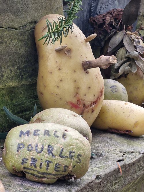 Ursprünglich war es von einem mit Kartoffeln bepflanzten Beet umgeben. Das gibt es jetzt nicht mehr. Aber dafür gibt es ja die Kartoffeln auf dem Denkmal…