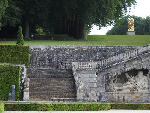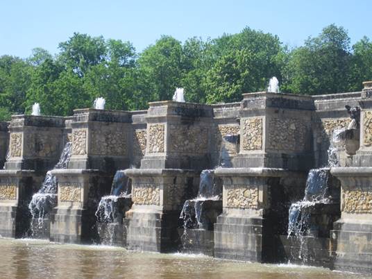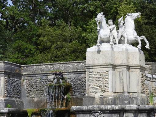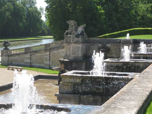 Zu den auf den Spaziergänger wartenden Überraschungen gehören auch der vom Schloss aus nicht sichtbare große Kanal, in dem das Wasser des Flüsschens Anqueil aufgestaut ist, und die große Kaskade.
