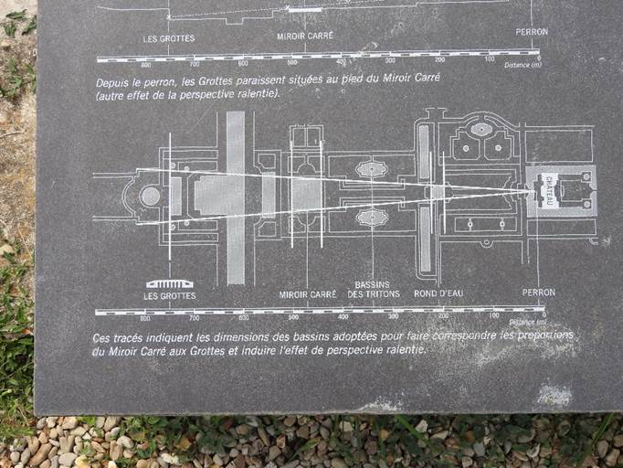 Hier zeigt sich ein von Le Nôtre für Vaux-le-Vicomte konzipiertes beidseitiges Spiel mit den Perspektiven, das auch und vor allem den Blick von der Schlossterrasse auf den Garten charakterisiert.